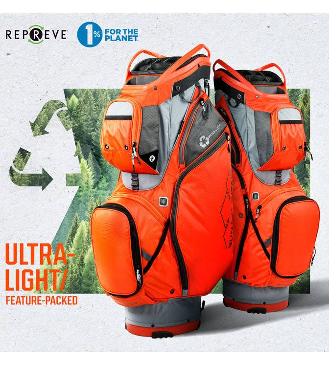 The Eco-Lite Cart Bag is a lightweight and feature-packed cart bag made with a material manufactured by Repreve®, a company who uses recycled plastic bottles to produce performance fabrics.